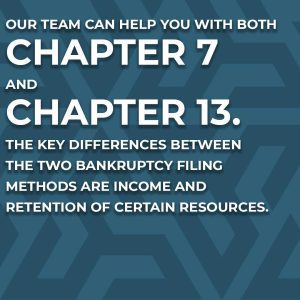 Our team can help you with both Chapter 7 and Chapter 13. The key differences between the two bankruptcy filing methods are income and retention of certain resources. Those filing Ch 7 bankruptcy in Anderson or Indianapolis liquidate their nonexempt assets to discharge unsecured debts. When you file through this method, the bankruptcy court will assign a trustee to your case. This trustee will be in charge of liquidating your belongings to repay creditors for debts and unpaid bills. That said, most of our clients who filed Ch 7 were able to retain most if not all of their possessions.